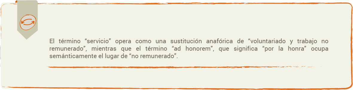 El término “ad honorem” se encuentra en el lugar de:
