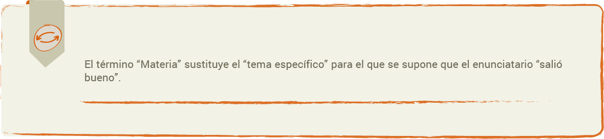 El término “materia” se refiere a: