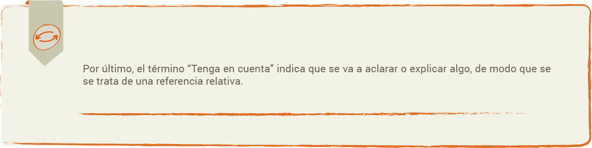 El término “tenga en cuenta que” corresponde a una referencia: