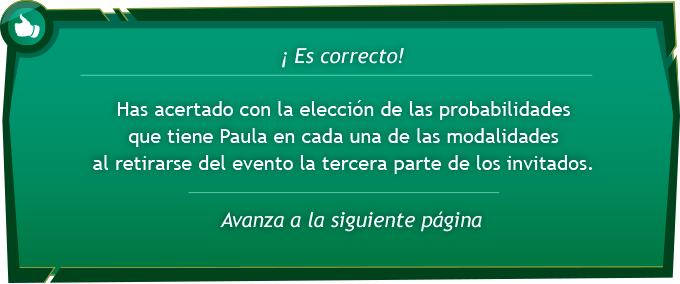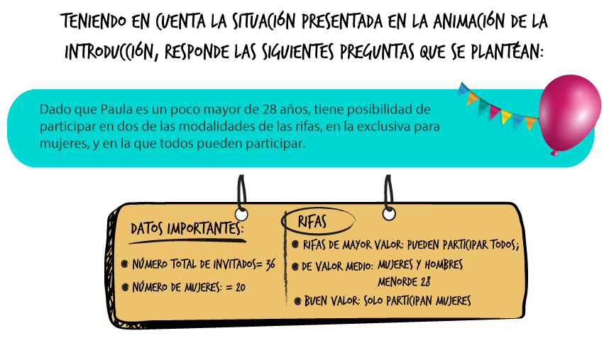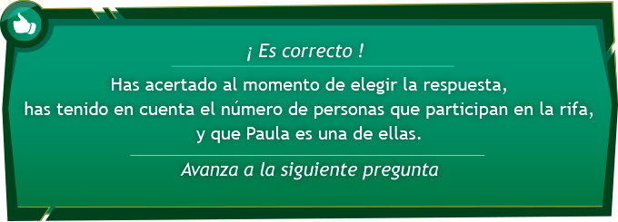 2. Debido a la tardanza en empezar las rifas, un número de invitados se han tenido que ir de la celebración. Teniendo presente que el objetivo de Paula es llevarse al menos un regalo para la casa, ¿Cuál será el razonamiento que mejor describa la situación de Paula?